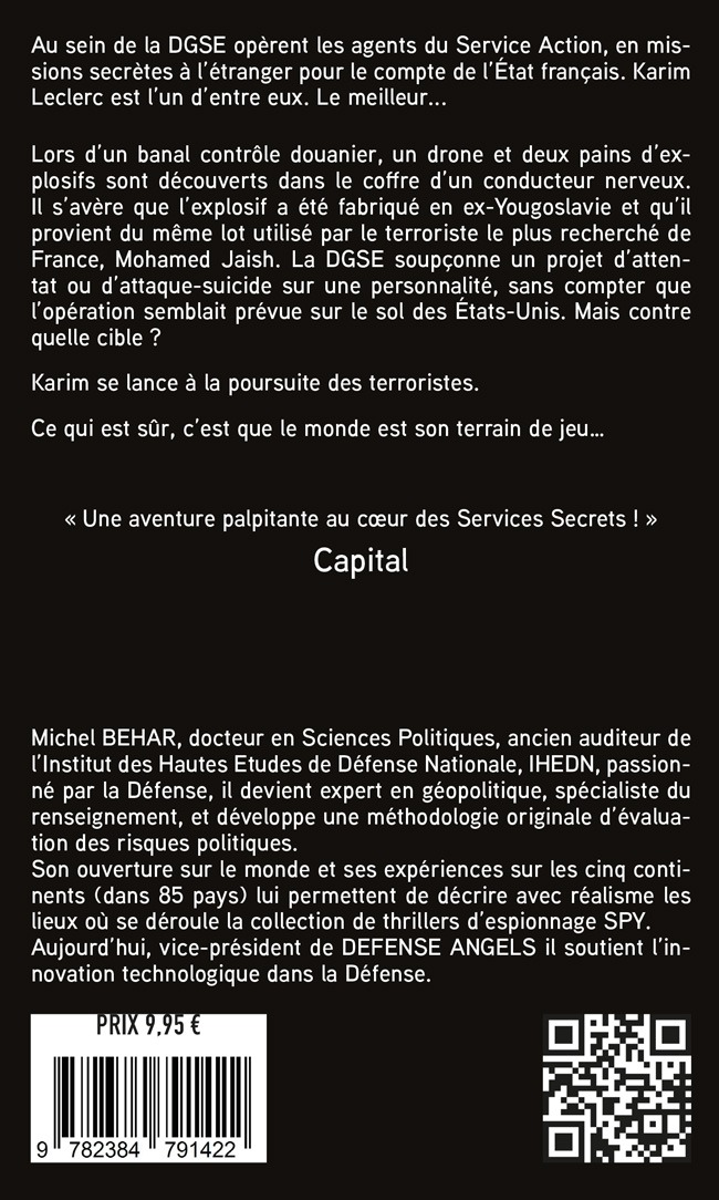 Lors d’un banal contrôle douanier, un drone et deux pains d’explosifs sont découverts dans le coffre d’un conducteur nerveux. Il s’avère que l’explosif a été fabriqué en ex-Yougoslavie et qu’il provient du même lot utilisé par le terroriste le plus recherché de France, Mohamed Jaish. La DGSE soupçonne un projet d’attentat ou d’attaque-suicide sur une personnalité, sans compter que l’opération semblait prévue sur le sol des États-Unis. Mais contre quelle cible ? Karim se lance à la poursuite des terroristes.